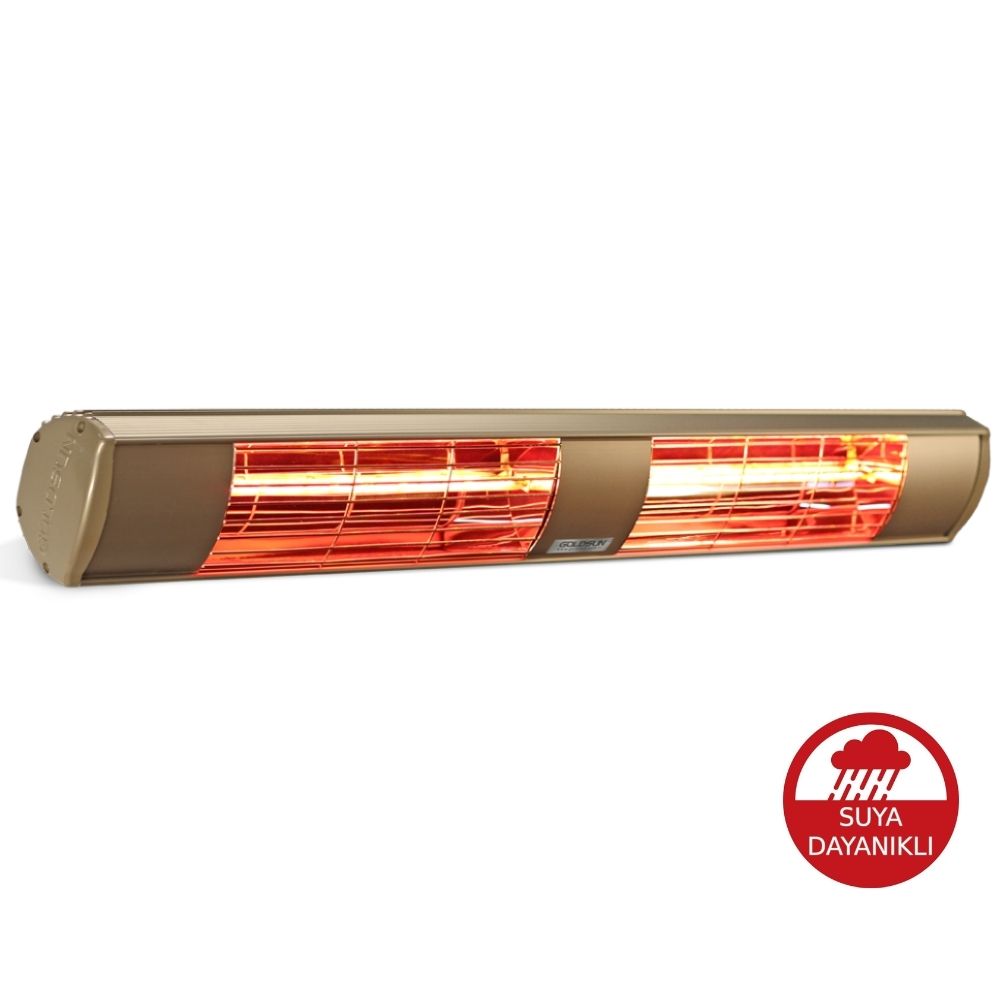 Goldsun Aqua GSA30 Bej: Goldsun markasının son ürünü Goldsun Aqua, bugüne kadar üretilmiş en teknolojik infrared ısıtıcıdır. 6 aylık AR-GE çalışmaları sonucu geliştirilen özel reflektörü sayesinde ampulden çıkan ışınların tamamını cisimlere yönlendirir, böylelikle ısıtma verim ve yoğunluğu artarken ampul ömrü de uzar. 1,5-2 ve 3 kw’lık kapasiteleri bulunan Aqua, ayrıca IP55 standardında su geçirmezliğe sahiptir.
